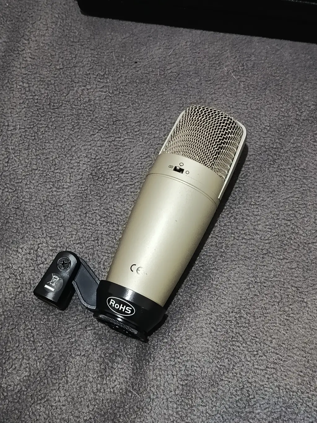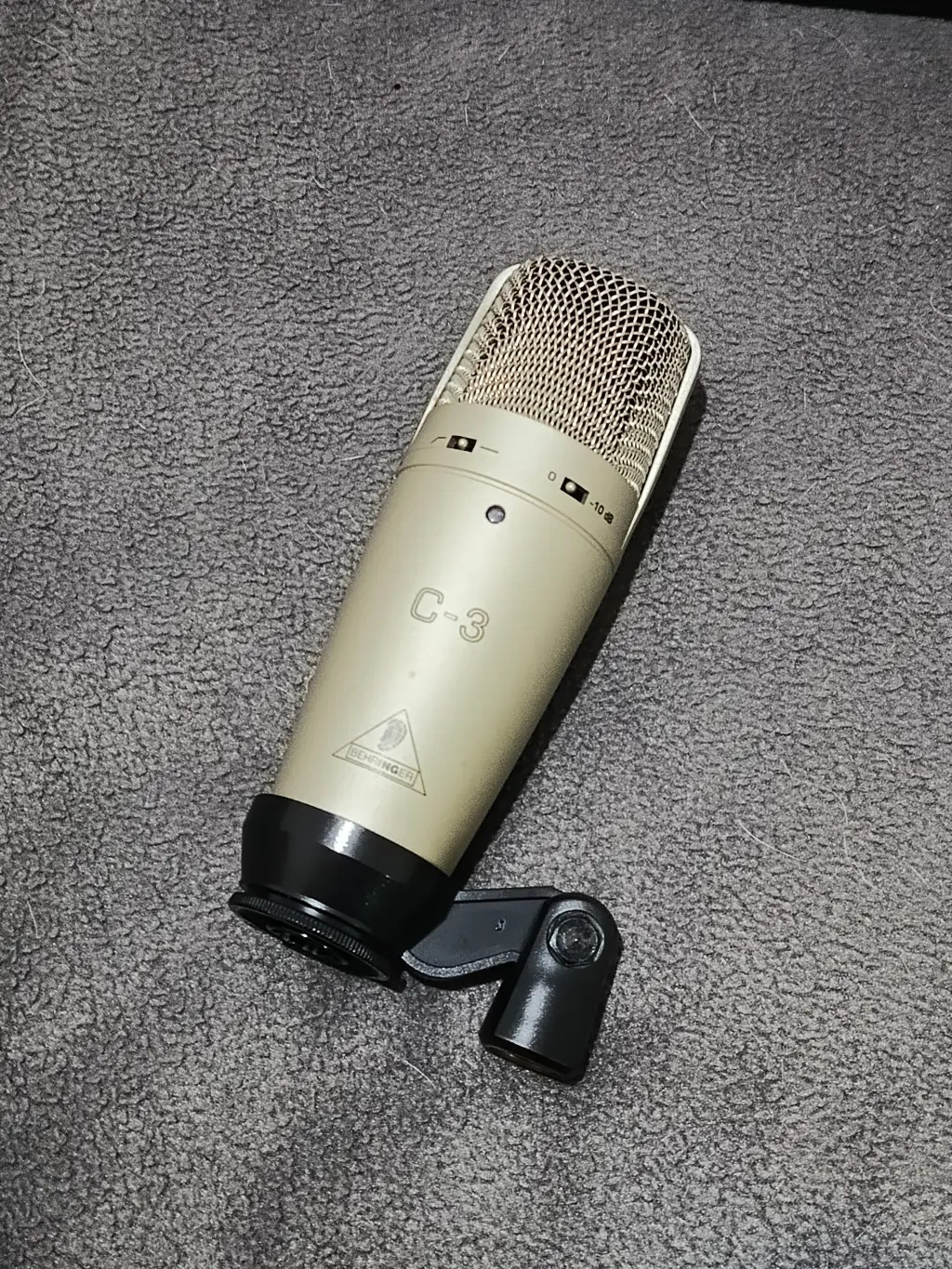 Micrófono condensador Behringer C-3 en excelente estado, ideal para grabación de voces, instrumentos acústicos, podcast y home studio. Ofrece tres patrones polares seleccionables (cardioide, omnidireccional y figura en 8), lo que permite adaptarlo a distintas situaciones de grabación.